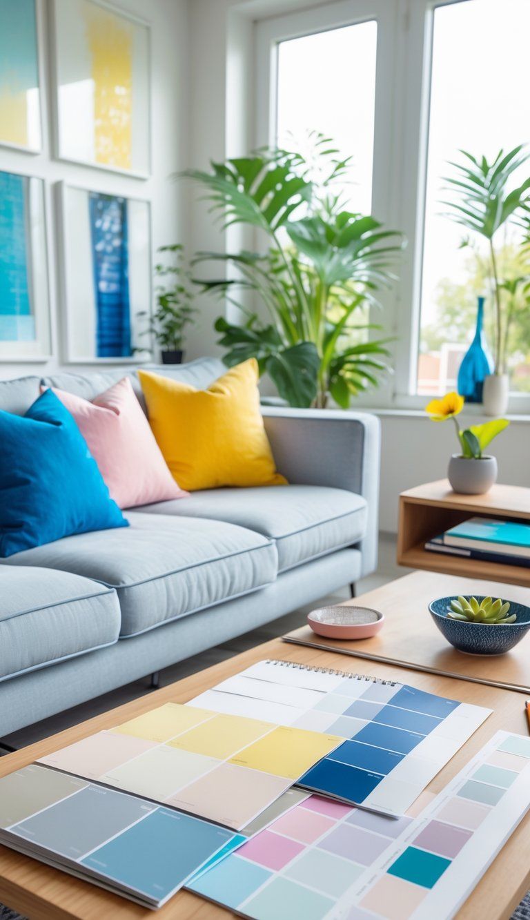 Use neutral colors as your base. White, beige, and gray make rooms feel calm and open. Add a few pops of color with small accessories that you can swap out whenever you want.