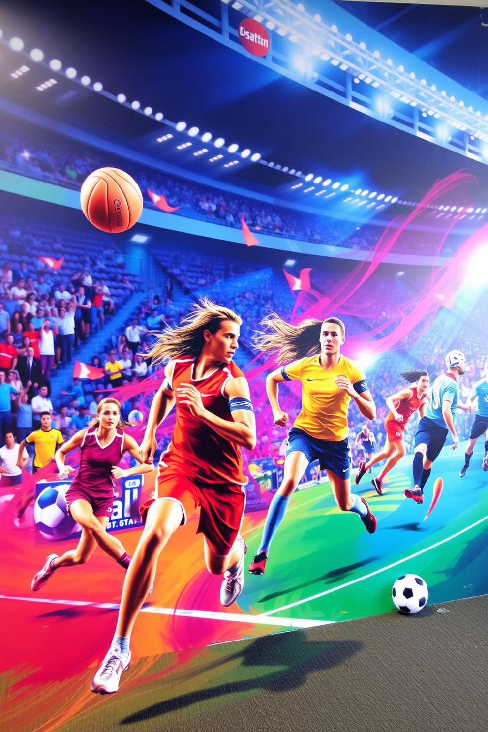 Incorporate various sports like basketball, soccer, and running to inspire motivation and movement. The artwork should evoke a sense of determination and passion for an active lifestyle.