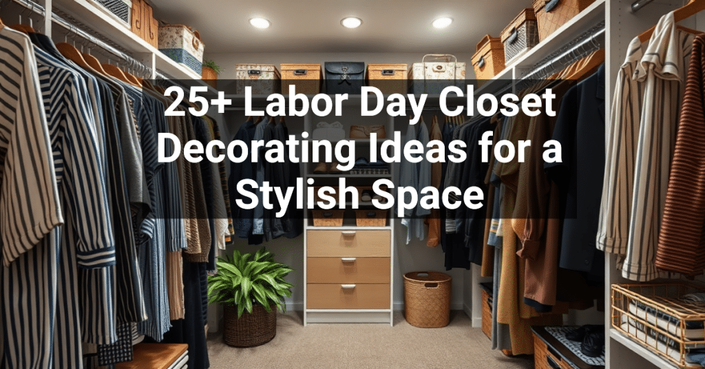 Labor Day closet decorating ideas include organizing seasonal clothing with stylish storage bins and adding decorative hooks for accessories. Soft lighting enhances the space, while a fresh coat of paint in a calming color creates an inviting atmosphere.