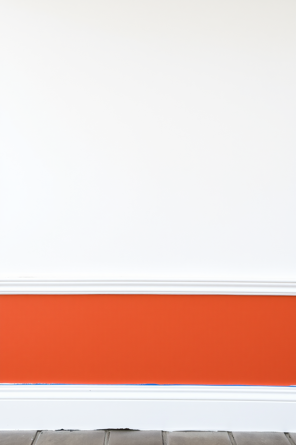 A stylish half-painted wall showcasing a bold color on the lower half and a neutral tone on the upper half. The transition is accented with a sleek wooden trim that adds a touch of elegance.