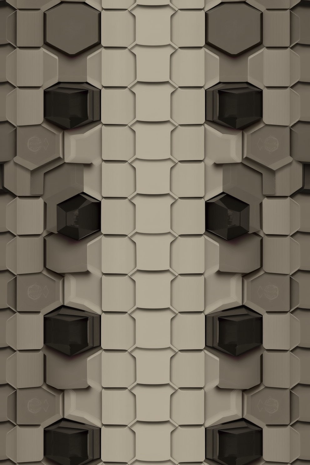 Layered hexagons create a striking three-dimensional effect on the walls. The hexagon wallpaper features a blend of muted tones that adds depth and sophistication to the space.
