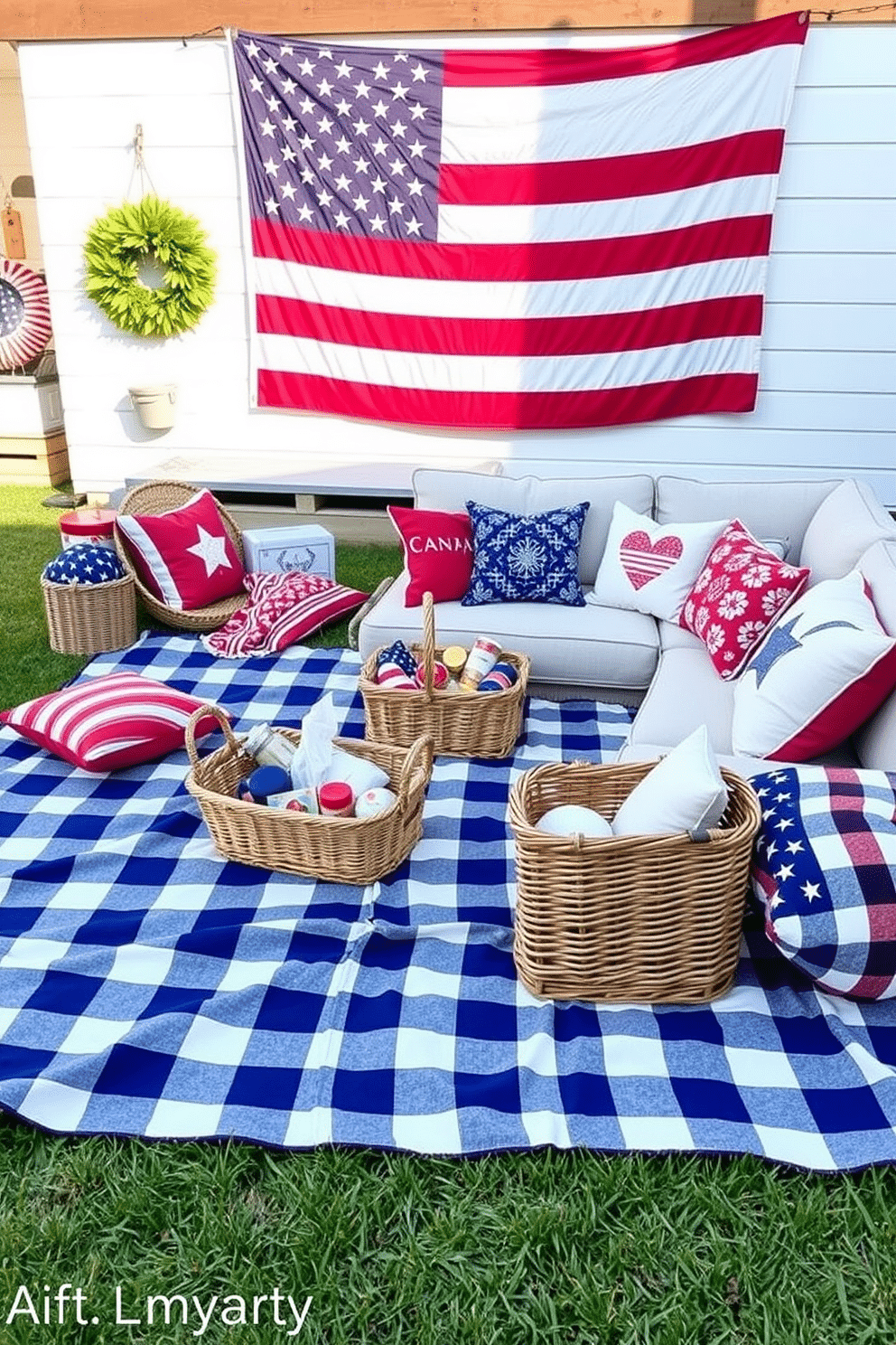 Incorporate patriotic throw pillows and a woven blanket on the couch to enhance the festive atmosphere. Use string lights and a small American flag banner to add a touch of whimsy to the decor.