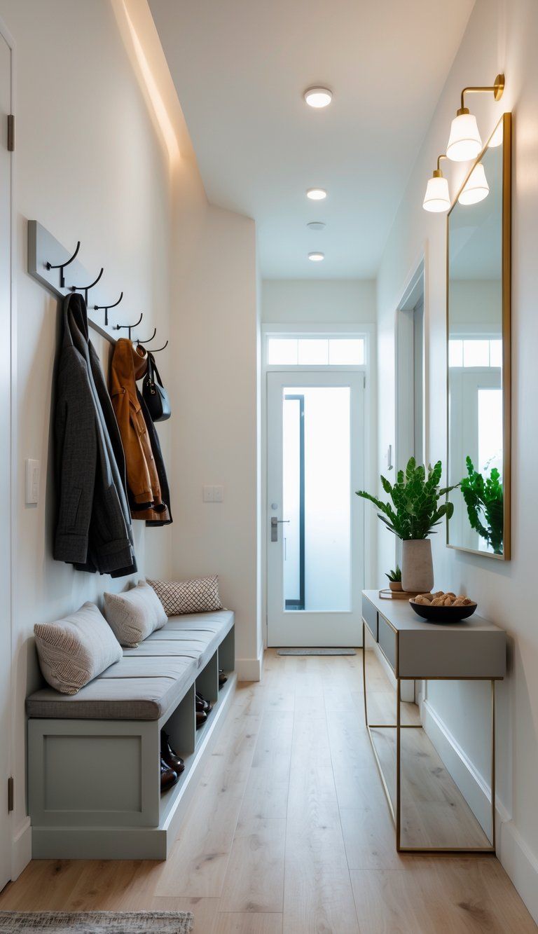 If you’re dealing with tight quarters, you really can’t skip multi-functional furniture. Grab a bench with hidden storage; you’ll have a spot to sit while you pull off your shoes, plus somewhere to stash seasonal stuff.